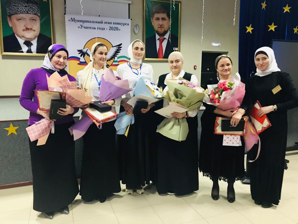 Лучшим учителям: Шамаева Раиса Мацуевна, учителю начальных классов МБОУ «СОШ им.Я.У.Эсхаджиева с.Толстой-Юрт»; Джайрхановой Аминат Ширвановне, учителю истории и обществознания МБОУ «СОШ с.Кень-Юрт» - присвоен статус лауреатов профессионального конкурса. Мушуева Кистаман Рамазановна, учитель математики МБОУ «СОШ с.Виноградное» заняла 3 место, Амаева Елена Дудуевна, учитель начальных классов МБОУ «СОШ ст.Петропавловская» заняла 2 место.