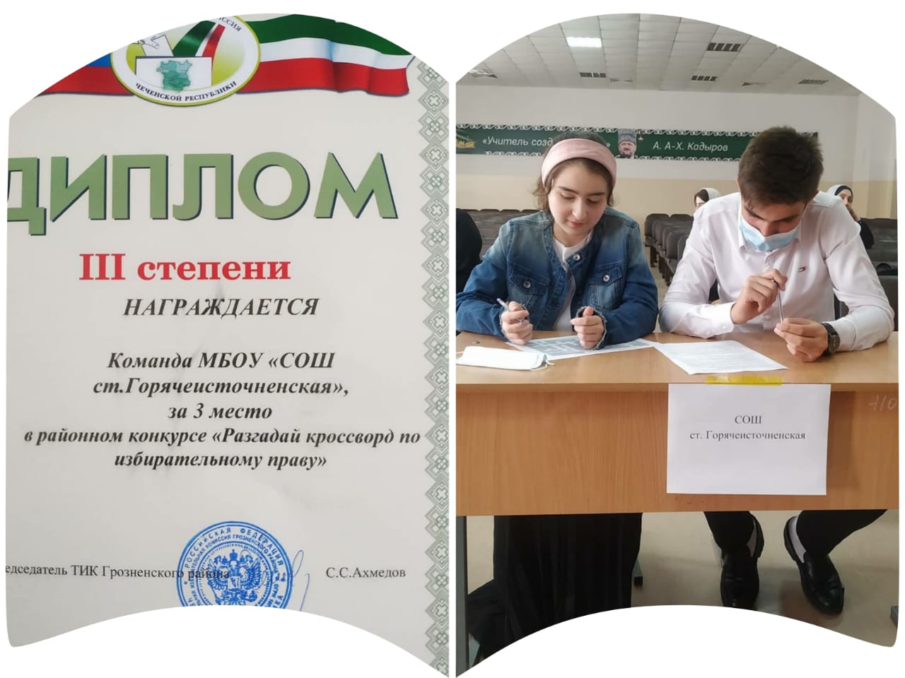 Межиев Ахмед и Вахаева Даяна, ученики 11 классаа, заняли 3 место в районном конкурсе "Разгадай кроссворд по избирательному праву"