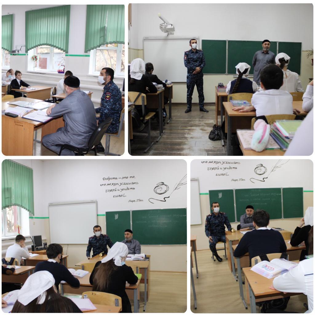 13.01.202113.01.2021 г. в нашей школе инспектором ОПДН ОМВД России по Грозненскому району ЧР, лейтенантом полиции Байсаевым И.С. и представителем совета старейшин по Грозненскому району Хасуевым Б.Х. были проведены профилактические беседы с учащимися 8 - 6 классов.