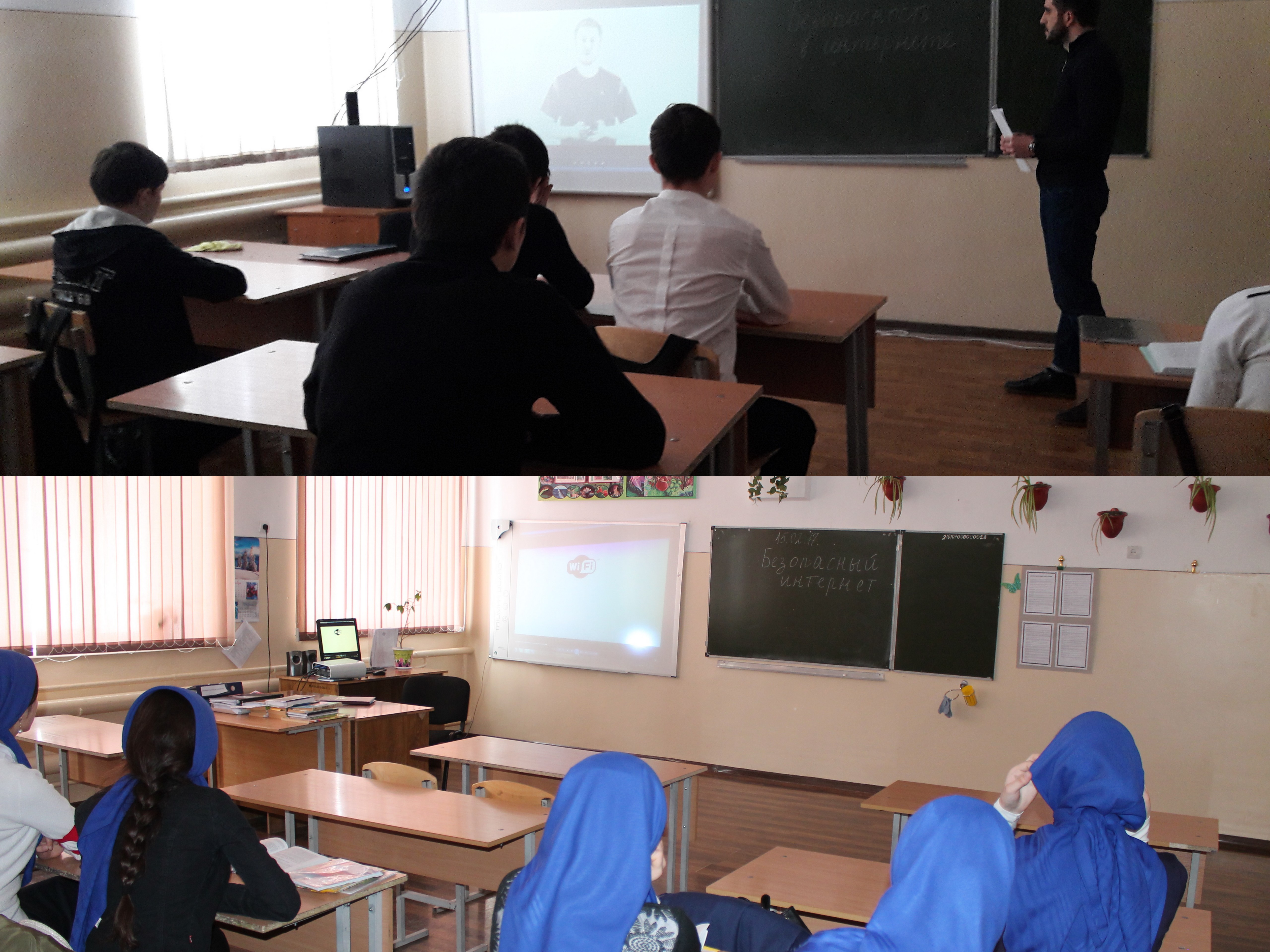Заместителем директора по ИКТ для учащихся 7-11 классов был проведен урок по безопасности в сети интернет. На уроках учащиеся просматривали видеоролики с сайта «Сетевичок» в которых показывали чего нужно остерегаться в сети интернет, как правильно и безопасно искать и скачивать нужную информацию, как вести себя в соцсетях и т.д. В конце урока проходили дискуссии по теме урока.