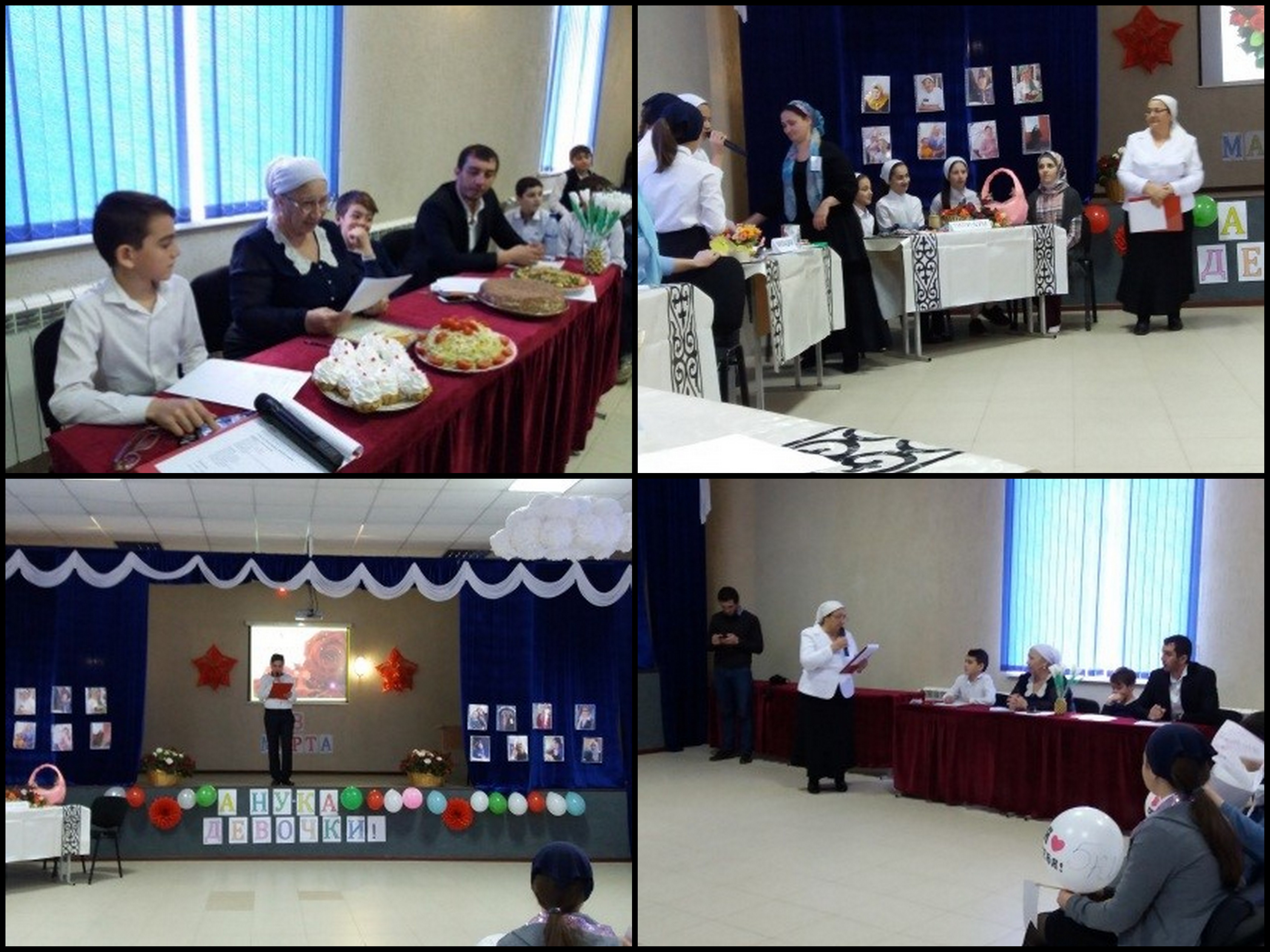 7 марта в актовом зале школы состоялся конкурс «А, ну – ка, девочки!», посвященный международному празднику Дню 8 марта. В нём приняли участие команды девочек 5-7 классов вместе с классными руководителями. Конкурсная программа была и разнообразной и интересной. В неё входили: