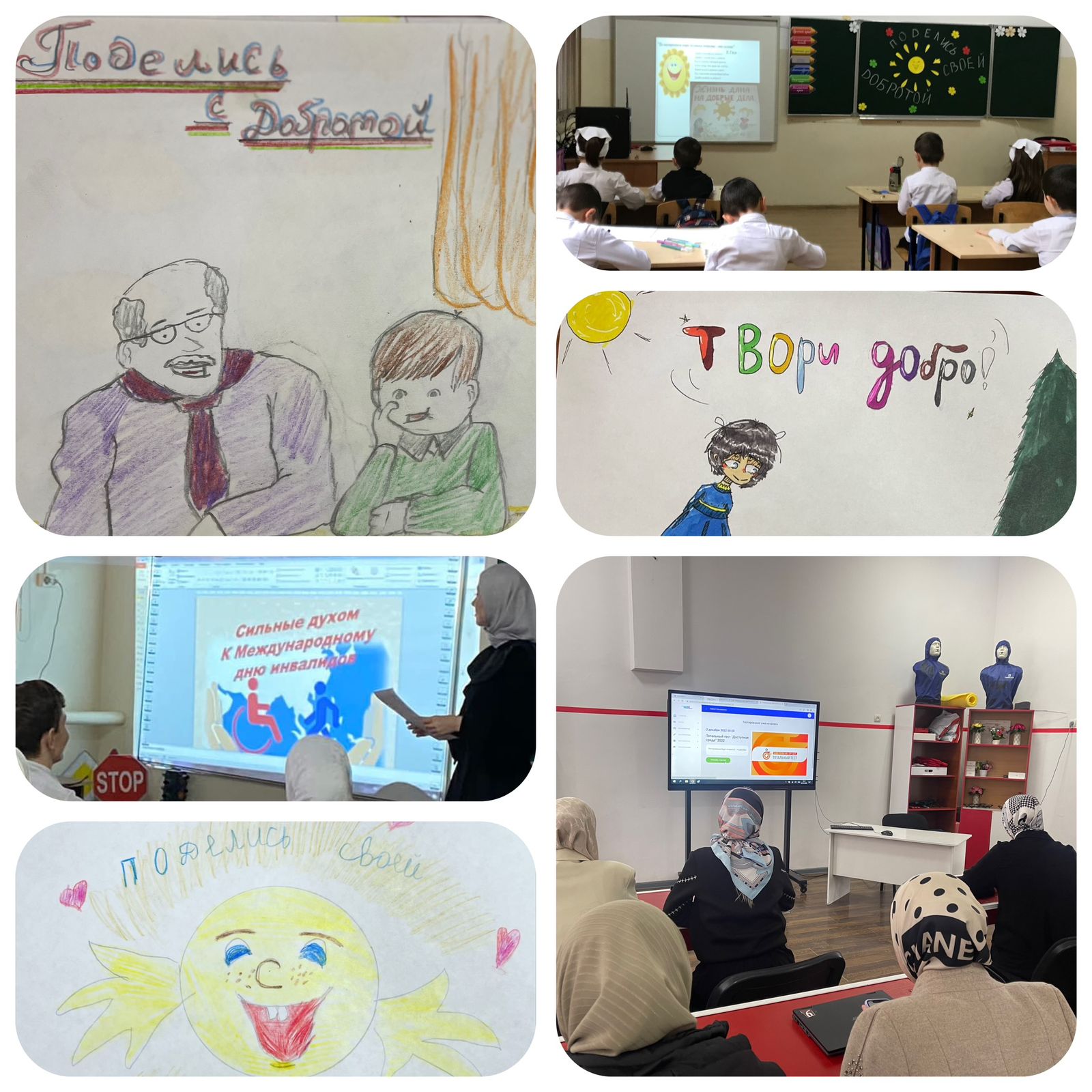 Согласно плану проведения мероприятий в школе начались с классных часов и конкурса рисунков. Во всех классах прошли тематические классные часы по формированию толерантного отношения к гражданам с ограниченными возможностями здоровья: «Поделись со своей добротой», «Сильные духом».