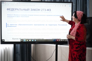 Далее начальник отдела методического сопровождения образовательного процесса РОО Румика Накаева, коснулась вопроса введения федеральных основные образовательные программы (ФООП).