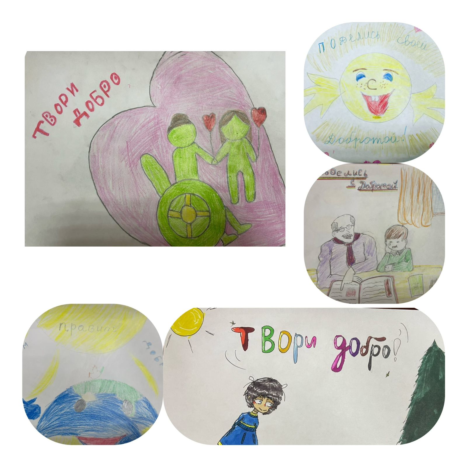 06.12.2023Учащиеся МБОУ "СОШ ст. Горячеисточненская" принели участие в конкурсе рисунков на тему "Твори добро". Творить добро можно разными способами: помогать пожилым и больным людям, кормить животных, охранять окружающую природу. Такие конкурсы помогают выражать детям свои эмоции с помощью изобразительного искусства.
