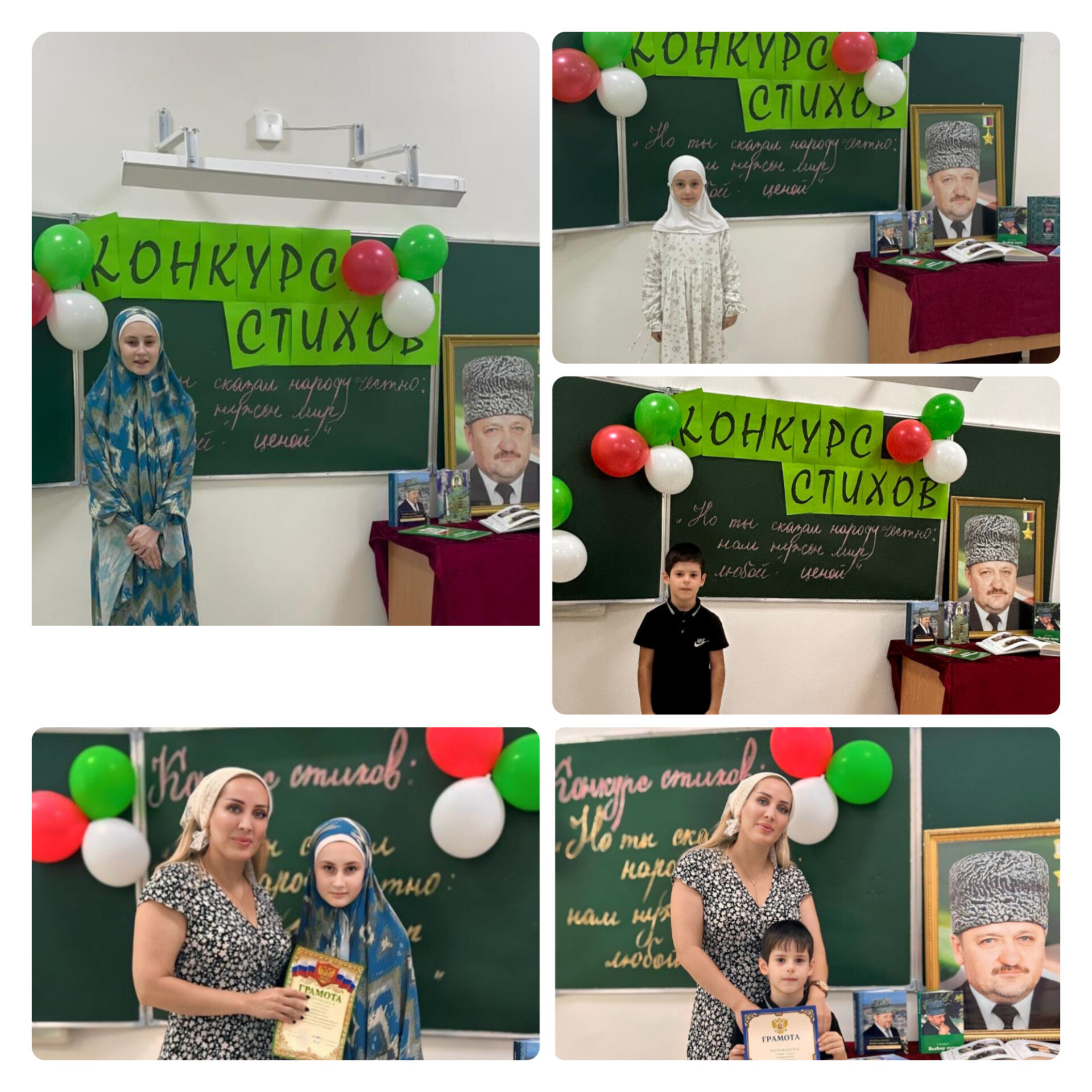 12.08.2024В преддверии 73-летия со Дня рождения Первого Президента Чеченской Республики, Героя России Ахмата-Хаджи Кадырова (Дала гIазот къобал дойла цуьнан!) и в соответствии с планом работы муниципального учреждения «Отдел образования Грозненского муниципального района Чеченской Республики», в МБОУ «СОШ ст.Горячеисточненская» среди учащихся 2-9 классов провели конкурс стихов: «Но ты сказал народу честно: нам нужен мир любой ценой». Главная цель этого конкурса заключалась в воспитании духовных и моральных ценностей, а также патриотизма среди учащихся и выражении гордости за свою Родину. Итоги конкурса: 1 место заняла ученица 8 класса Алиева Ф. 2 место- ученик 2 класса Хизриев Я., ученица 5 класса Темурчаева Р. 3 место- Витаева М., ученица 4 класса. По окончанию мероприятия, директор МБОУ «СОШ ст.Горячеисточненская», Харданова И.А. наградила всех участников конкурса грамотами