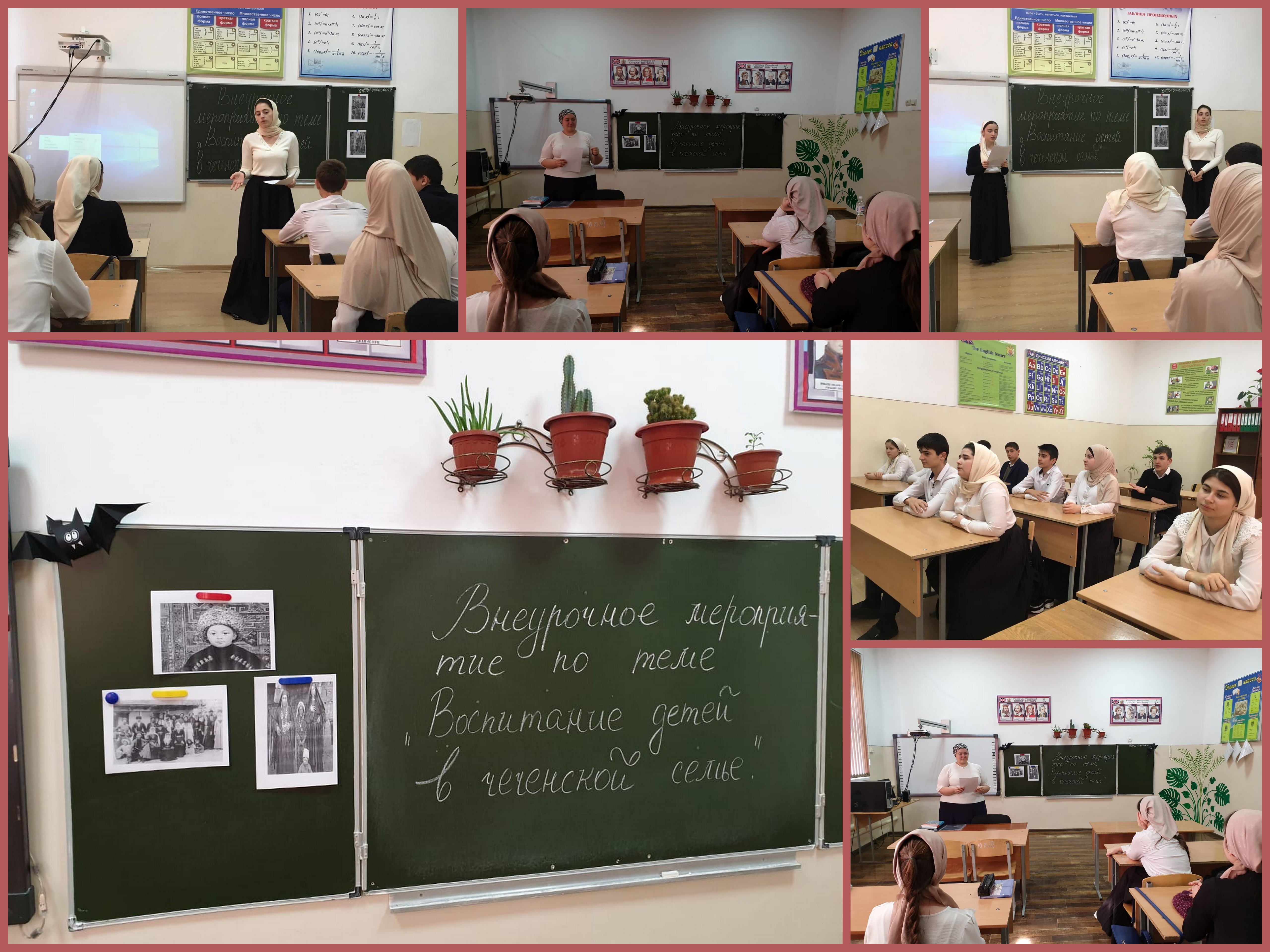 Система трудового воспитания у чеченцев имеет глубокие и далекие традиции, в которых отражены любовь и уважение к труду и людям труда, к своей профессии, к ценностям, созданным трудом, любовь к земле и т. д. Из поколения в поколение передавались эти традиции. Сложившаяся система отношений чеченской семьи и ее трудовая деятельность были арсеналом воспитательных средств чеченцев. Воспитание осуществлялось в контексте с реальной трудовой деятельностью, и традиции были непосредственно вплетены в процесс жизни. Эти и другие вопросы были обсуждены с обучающимися на внеурочном мероприятии классными руководителями и детьми.